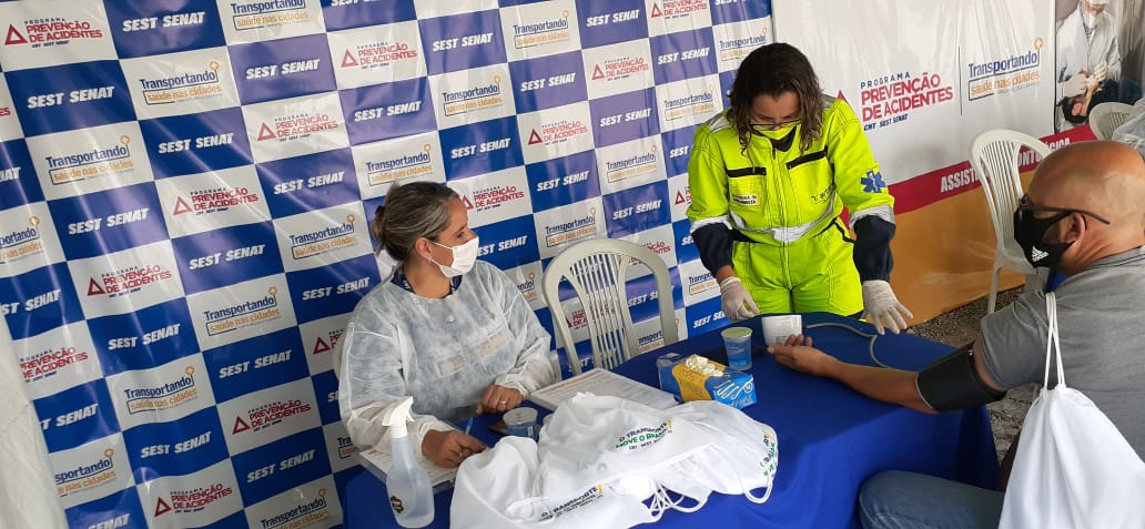 Durante a campanha a participação da equipe de Atendimento Pré-Hospitalar foi essencial, pois auxiliou na aferição de pressão e temperatura dos 175 motoristas que foram atendidos na ação.