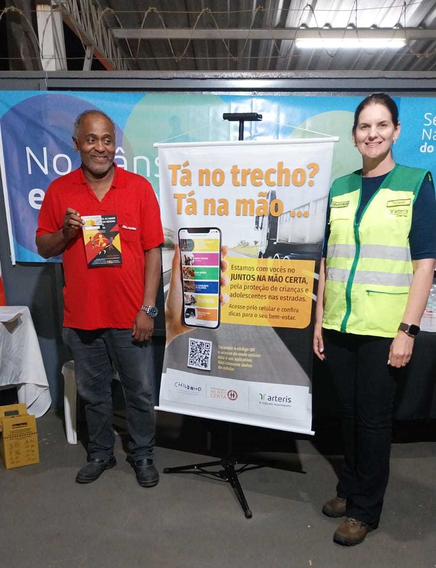 A ação também incluiu orientações do programa Na Mão Certa, a iniciativa tem como objetivo mobilizar motoristas de caminhão como agentes de proteção nas rodovias, estimulando o engajamento em um compromisso coletivo pela valorização da vida e dos direitos humanos.