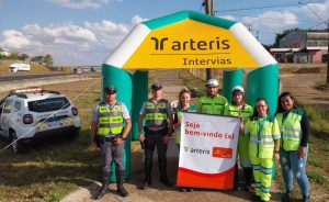 A Arteris Intervias promoveu ação especial nesta quinta-feira (07/08) para reforçar a importância da utilização das passarelas para a travessia segura de ciclistas nas rodovias.