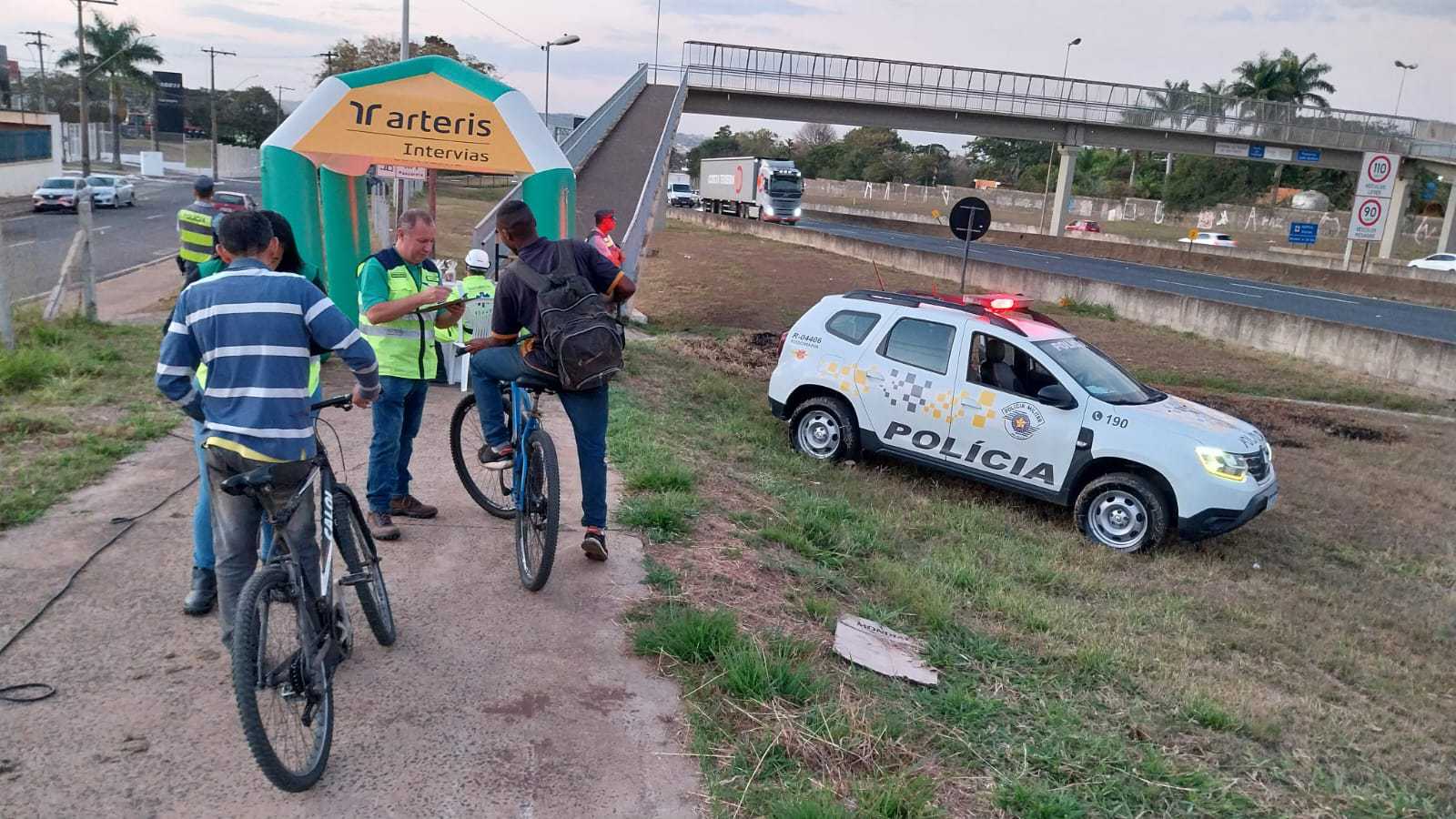 Durante a atividade, 18 ciclistas foram abordados para receber orientações sobre os riscos de caminhar às margens da via e a importância de utilizar a passarela para uma travessia segura.