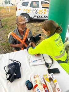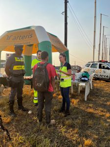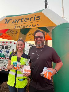 As equipes de Operações, Projetos Educacionais e Segurança no Trânsito da Arteris Intervias abordaram 26 pedestres na campanha, que contou com entrega de folders educativos com dicas de segurança, coletes refletivos e kit lanchinho, além de realizar a aferição de pressão arterial.