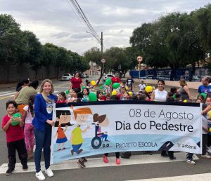 Dia Nacional do Pedestre, celebrado na sexta-feira (08/08), foi marcado por uma atividade realizada em parceria com a CEIEF Jamile Caram de Souza Dias, do município de Limeira, a qual é participante do Projeto Escola Intervias.