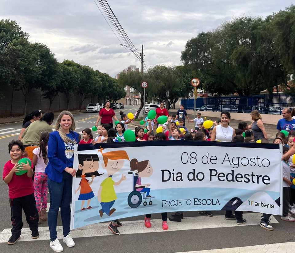 A ação foi realizada no período da tarde, onde a analista dos Projetos Educacionais e Segurança Viária da Arteris Intervias e representantes do Policiamento Rodoviário realizaram uma roda de conversa com os alunos para falarem sobre os direitos e deveres do pedestre e posteriormente foi realizado passeatas nas proximidades da escola.