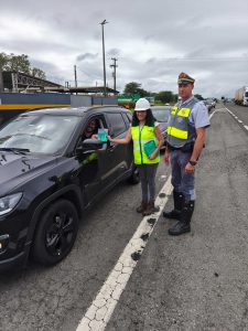 Orientações de segurança aos motoristas abordados e entrega de folhetos