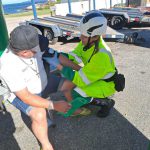 Após as orientações, realizamos inspeção das condições do veículo: Iluminação, faixas refletivas, efetuando pequenos reparos e trocas.