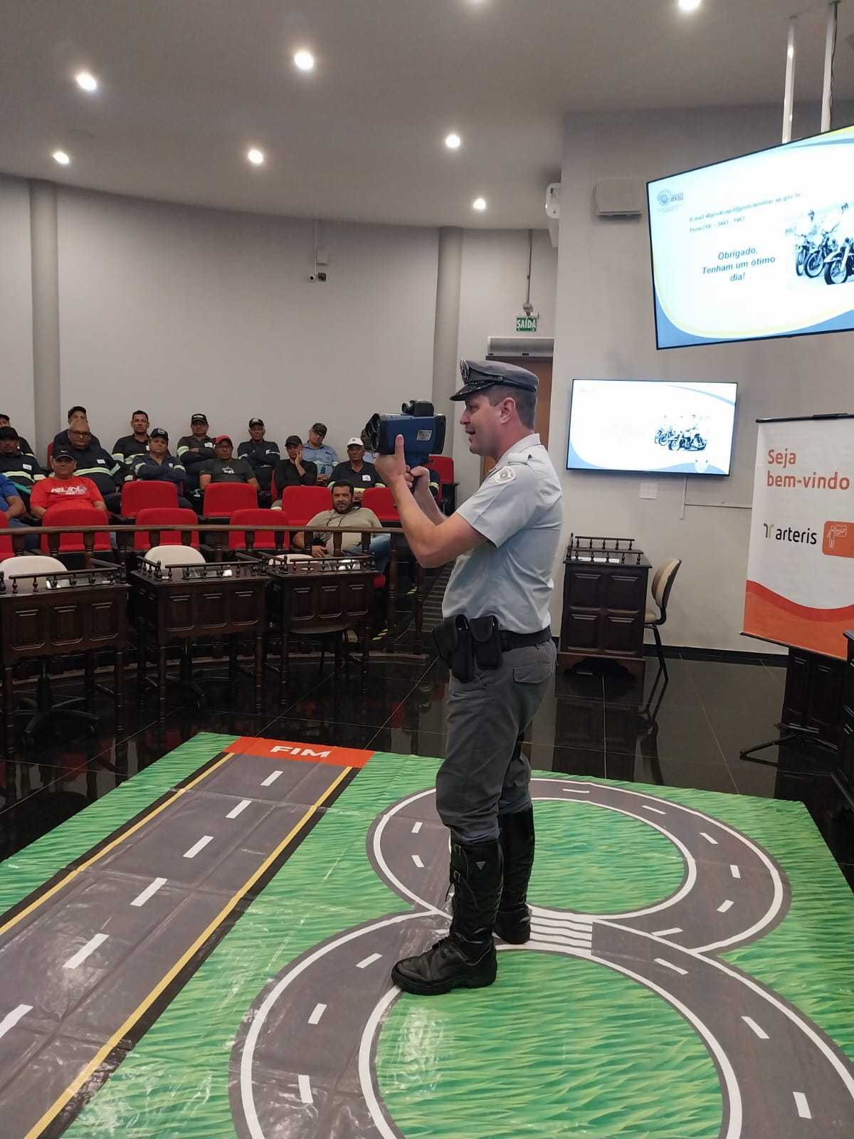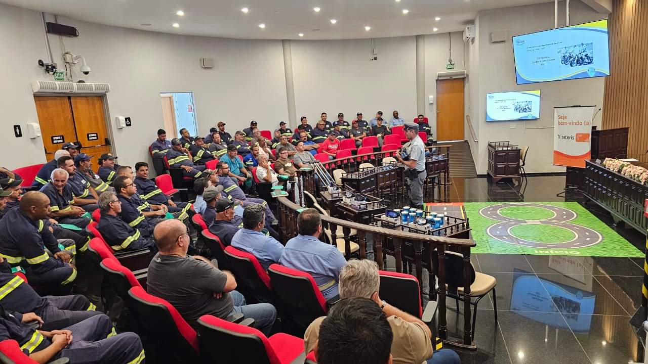 Ao todo, 77 colaboradores foram orientados pelo coordenador de Operações Reginaldo Pereira, pela analista de Projetos Educacionais Cintia Viana e pelo cabo Marcel, do Policiamento Rodoviário.