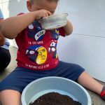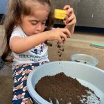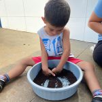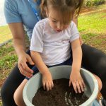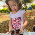 Antes de iniciar o nosso dia de plantio, realizamos durante uma semana algumas explorações com recursos naturais assim como flores, grama, folhas, terra e areia. Nesse dia da terra conseguimos alguns registros, onde os pequenos utilizaram as mãos para sentirem a textura da terra seca e molhada, foi uma exploração com muita sujeira e diversão.
