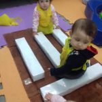 Esta atividade foi desenvolvida no dia 31/05/2019 com a turma Berçário I (6 a 15 meses de idade) do C.M.E.I. Professora Lenita de Souza Gaya, Navegantes – SC. Participaram 14 pessoas (12 crianças e 02 adultos). Usamos para a confecção da “estrada” caixas de papelão, caixas de leite, folhas sulfite, imagens de placas de trânsito e fita adesiva. Esta atividade teve como finalidade propor às crianças momento de experimentar e conhecer por meio da brincadeira, alguns elementos do trânsito.