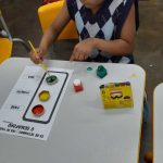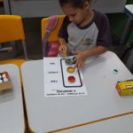 Em seguida, foi apresentada a imagem do semáforo. As crianças foram questionadas se já o haviam visto e discutiram o significado de cada cor. Para finalizar, cada aluno coloriu seu próprio semáforo com tinta, reforçando o aprendizado por meio da expressão artística.