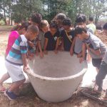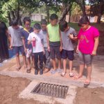 A explicação sobre os poços de visita despertou bastante interesse. As crianças entenderam que esses poços são como “portas de acesso” às tubulações, e que são essenciais para garantir o bom funcionamento do sistema, pois permitem verificar se há entupimentos ou necessidade de reparos.