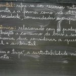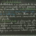 • Os alunos copiaram um texto sobre Sustentabilidade no caderno.