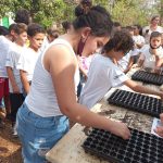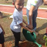 Nesse dia todos os alunos da escola foram ao bosque municipal da cidade, onde plantaram uma muda de árvore e ganharam um vasinho com sementes de girassol para plantarem em casa.