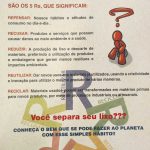 Foi trabalhado o texto ¨5Rs necessários no meio ambiente¨, que são REPENSAR, RECUSAR, REDUZIR, REUTILIZAR e RECICLAR. A professora explicou cada item com os alunos, fazendo com que cada um participasse dizendo quais são os hábitos em casa. Essa atividade teve o objetivo de fazer com que os alunos levassem essas questões para casa, fazendo com que as famílias se conscientizem.