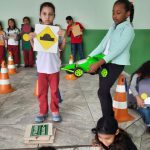 Para comemorar o Dia do Pedestre levamos nossos alunos do 1º ano, 2º ano e fase I para o pátio da escola e mobilizamos eles á assistir alguns vídeos educativos do clube bem te vi, clubinho Honda e do Detran sobre o cuidados que o pedestre deve ter e iniciamos uma roda de conversa com os alunos debatendo o que eles viram nos vídeos como: andar na faixa de pedestre, não atravessar a rua atendendo o celular, explicamos que as crianças devem brincar longe de lugares que passam carro, não devem colocar o braço ou a cabeça para fora do carro, crianças deve andar no banco de trás do carro e etc. Após os vídeos a professora explicou a função da faixa de pedestre, do semáforo e de algumas sinalizações .