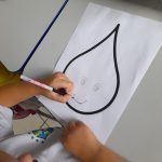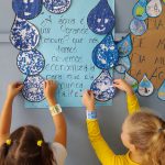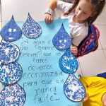 Depois de uma conversa no geral com as crianças, a professora produziu um cartaz onde entregou aos alunos um desenho impresso de uma gota para que elas desenhassem um rostinho que representasse o sentimento da gotinha ao ser cuidada com carinho, economizando de maneira correta e em seguida os alunos coloram pedaços de e.v.a dando cor ao desenho. Por fim o cartaz foi exposto o mural da escola.