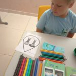 Na sequência os alunos pintaram alguns desenhos e a professora colocou em seu guarda chuva.