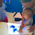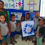 Desenvolvimento: A professora iniciou a aula explicando o que é o Dia da Água e por que é importante comemorá-lo. Mostrou a primeira ilustração da história e apresentou a personagem Gotinha. A seguir, leu a história “A Aventura de Gotinha no Dia da Água” para a turma. Realizando pequenas pausas nas partes interativas para envolver as crianças com perguntas e atividades, utilizando as ilustrações correspondentes a cada parte da história para tornar a leitura mais visual e envolvente. Após a leitura, promoveu uma discussão sobre os temas abordados na história, como a importância da água, o consumo consciente e a preservação dos rios e lagos. Encorajando as crianças a compartilharem suas ideias e experiências relacionadas ao uso da água em suas casas e na escola, realizando assim um cartaz com as mãos dos alunos sobre água ( A ÁGUA ESTÁ EM NOSSAS MÃOS). Encerrou a aula reforçando a mensagem da história e a importância de cada um contribuir para a preservação da água. Estabeleceu em seguida, um compromisso coletivo com a turma para adotar hábitos mais sustentáveis relacionados ao uso da água .