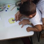A professora juntamente com suas monitoras realizaram uma atividade usando tinta de dedo e fez um lindo pé de Ipê Amarelo com sua turma, saudando o início da nossa primavera.
