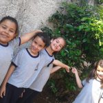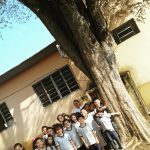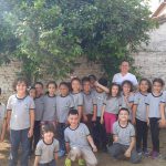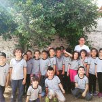 A galerinha ouviu atentamente a explicação e foram para os arredores da escola, onde aprenderam na prática sobre as árvores e seus frutos.