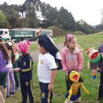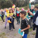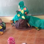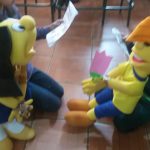 Após foi organizado uma dramatização do texto, sendo que os alunos apresentaram. Um aluno realizou os comentários, outro fez o personagem Gil, outra a personagem Thais e demais alunos fizeram os personagens de animais usando os fantoches de animais ocorrendo assim a apresentação do texto em forma de dramatização.