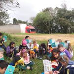 No primeiro momento foi realizada a leitura da revistinha com o tema “Pense, Repense, Aja, Raja” em baixo de uma árvore nas proximidades da Escola onde passa a rodovia ao lado nesse momento após a leitura refletimos sobre o conteúdo da revista onde trouxe para o meio ambiente e as árvores, após foi realizado o estudo do texto em tirinhas “Quem planta colhe”, foi realizada a compreensão do texto com interpretação e voltamos para a sala de aula.