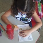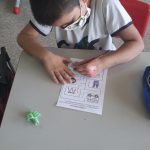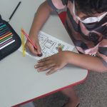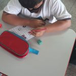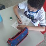 Antes de iniciarmos a atividade, os alunos comentaram como é o caminho que realizam da casa até a escola por quais referências, estabelecimentos comerciais e sinalizações de trânsito que perpassam durante o trajeto. Em seguida, analisamos as figuras que aparecem na atividade relembramos a funcionalidade do semáforo, da placa de pare e de trecho interditado, depois os alunos praticaram o raciocínio lógico e a coordenação motora para levar o ônibus até os estudantes e depois os estudantes até a escola sem tirar o lápis do percurso.