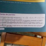 Logo depois, fizemos a leitura da página 71 também do livro de Geografia que falava sobre a vida nas cidades e trazia duas fotos. Uma retratando a paisagem de uma avenida localizada no espaço urbano da cidade de São Paulo, capital do estado, em 2016. E, a outra retratando a paisagem de uma rua localizada no espaço urano de Tucumã, Pará em 2016. E respondemos mais duas questões.