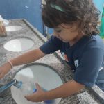 Em seguida conversamos sobre: Pra que serve a água? Onde a encontramos? O que podemos fazer com ela? E a sua importância em nossas vidas.