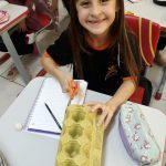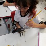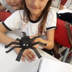 Para encerrar o trabalho os alunos já haviam trazido de casa, caixas de ovos para confeccionarmos em sala de aula uma aranha.