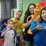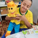 Leitura da história da Revista do Zé Quest com o fantoche.