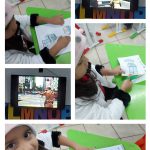 Depois, foi dado um quebra cabeça de guarda de trânsito no qual as crianças pintaram, recortaram e colaram no caderno de desenho.
