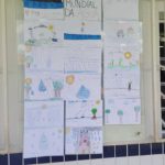 Os trabalhos foram organizados em um painel coletivo exposto no corredor da escola, promovendo valorização das produções dos alunos.
