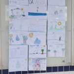 Após a contação da história, os estudantes produziram desenhos ilustrativos representando o percurso da água e elaboraram frases que expressam suas aprendizagem e reflexões sobre o tema.