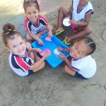 Atividade lúdica sobre os diferentes usos da água, como, lavar louça, escovar os dentes, tomar banho, sendo ressaltado como se deve fechar a torneira para ensaboar e depois enxaguar, evitando assim  o desperdício e  preservando esse bem precioso. Percebeu-se que as crianças adoraram essa experiência, participando ativamente da atividade proposta. Aproveita-se para dizer que a água utilizada na atividade foi posteriormente usada para regar as plantas da escola.