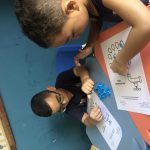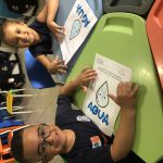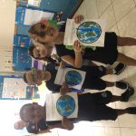 Em seguida, as crianças responderam sobre a utilização da água no dia a dia de suas rotinas. Após essa breve conversa confeccionamos as atividades com o título: NÃO DESPERDISSE A ÁGUA, PINTURA DA ÁGUA NO PLANETA  e aprenderam a escrita da palavra ÁGUA.