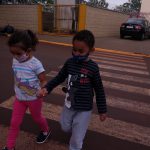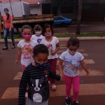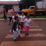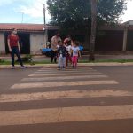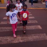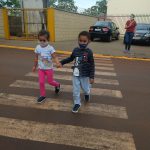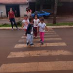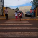 As crianças foram orientadas a usarem a faixa de pedestres.