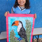 Com base na ação da Secretaria Municipal de Cultura e Turismo, que propôs uma exposição de animais vítimas de atropelamento, a professora Ana Carolina realizou um trabalho com sua turma do 4º ano, em que instruiu seus alunos a escolher um animal da nossa fauna e que utilizassem materiais recicláveis para a confecção de um cartaz.