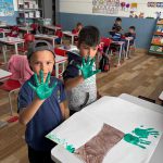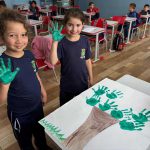 • Cada aluno carimbou sua mão, formando uma bonita árvore onde foi exposta no mural da sala com suas utilidades.
