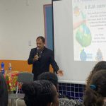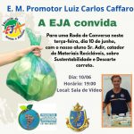 O Aluno da EJA, Sr. Adir participou de uma roda de conversa com seus colegas, sobre o Descarte Correto do lixo.