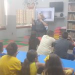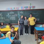 A policial foi convidada pelas turmas do quinto ano, que participam do projeto PROERD, para palestrar sobre o assunto em questão.