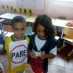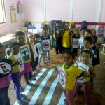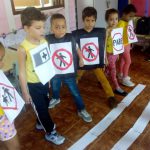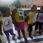 A tia Lucimeri do Pré 1 trabalhou com a sua turminha a profissão Guarda de Trânsito.