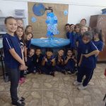 A água é um elemento indispensável para a vida de todos os seres humanos e para a natureza. Esse elemento é desperdiçado em vários lugares do planeta todos os dias. Há em alguns lugares do mundo que não há tanta abundância de água como em boa parte do Brasil, por esse motivo devemos trabalhar o dia mundial da água para conscientizar a grande importância deste elemento, fazendo que as crianças aprendam através atitudes cotidianas medidas de valorização da água. Para isso foi realizado roda de conversa com os alunos sobre a importância da água para o nosso organismo e o meio em que vivemos. Pintaram as gotas de água e juntos construíram um painel representando o planeta Terra e a água.