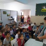 Dia três de maio do corrente ano, a diretora do Cemei Glycia juntamente com a supervisora e coordenadora do projeto no Cemei, Fabíula, fizeram a abertura falando sobre o “Maio Amarelo”. Iniciaram explicando o que é o trânsito e quem são os pedestres. Falaram sobre a importância de respeitar as leis de trânsito, mostraram as cores do semáforo e ressaltaram como os alunos devem atravessar a rua pela faixa de pedestre para que não aconteça acidentes. Falaram sobre os meios de transportes desde a antiguidade aos mais modernos utilizando o álbum seriado.