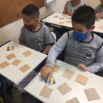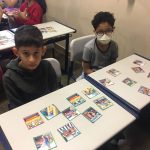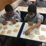 A professora fez uma roda de conversa sobre atitudes erradas no trânsito e depois confeccionou com os alunos um jogo da memória.