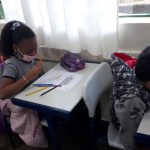 As crianças em consolidação da alfabetização fizeram um caça-palavra em que refletiram sobre o sistema de escrita e sobre o significado de cada palavra descoberta.