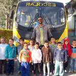 E o ônibus escolar que faz o transporte dos alunos da escola, está de acordo com as normas exigidas e possui a o assento para crianças com deficiência motora.