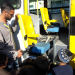 A princípio os alunos tiveram um momento de conversa com o motorista do transporte escolar. Neste momento o Werley explicou a importância da acessibilidade, para o portadores de necessidade motoras, como os cadeirantes, pessoas idosas, gestantes e dentre  outras especificidades.  A turma entendeu que todos nos temos as nossas diferenças e que devemos respeitar uns aos outros não só dentro do ônibus mas também no meio que vivemos.