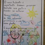 O trabalho sobre o meio ambiente foi realizado na disciplina de Português com a professora Renilda, nas turmas de 9º ano, tendo como base a importância do meio onde estamos inseridos e a obrigação de cuidado que devemos ter com ele.