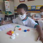 O material concreto desenvolve o raciocínio do aluno estimulando o pensamento lógico matemático, na construção de esquemas conceituais dando contornos e significados. É por meio dessas interações com o meio físico e social, que a criança constrói seu conhecimento e reaproveita materiais que iriam para a lixeira.