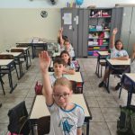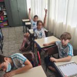 O aluno vinha até a mesa, escolhia uma e junto com sua dupla tenta encontrar a resposta da adivinha.